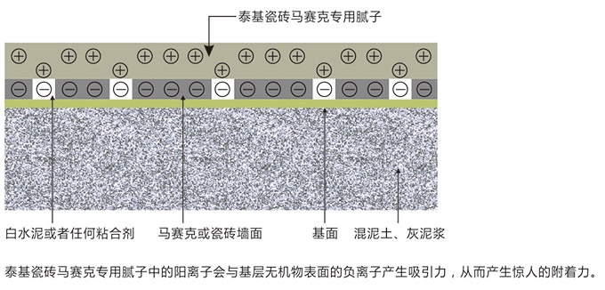 泰基瓷磚、馬賽克專用膩子含強力粘結劑,它是一種具有永久附著能力單體,附著力特強,且附載性極好,直接用于填補嵌磚面,使得翻新變得安全、實用、經濟、快速。